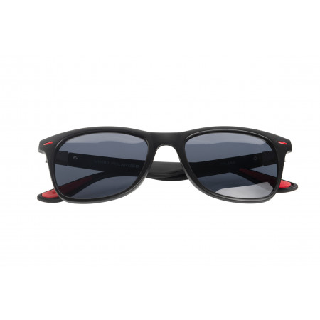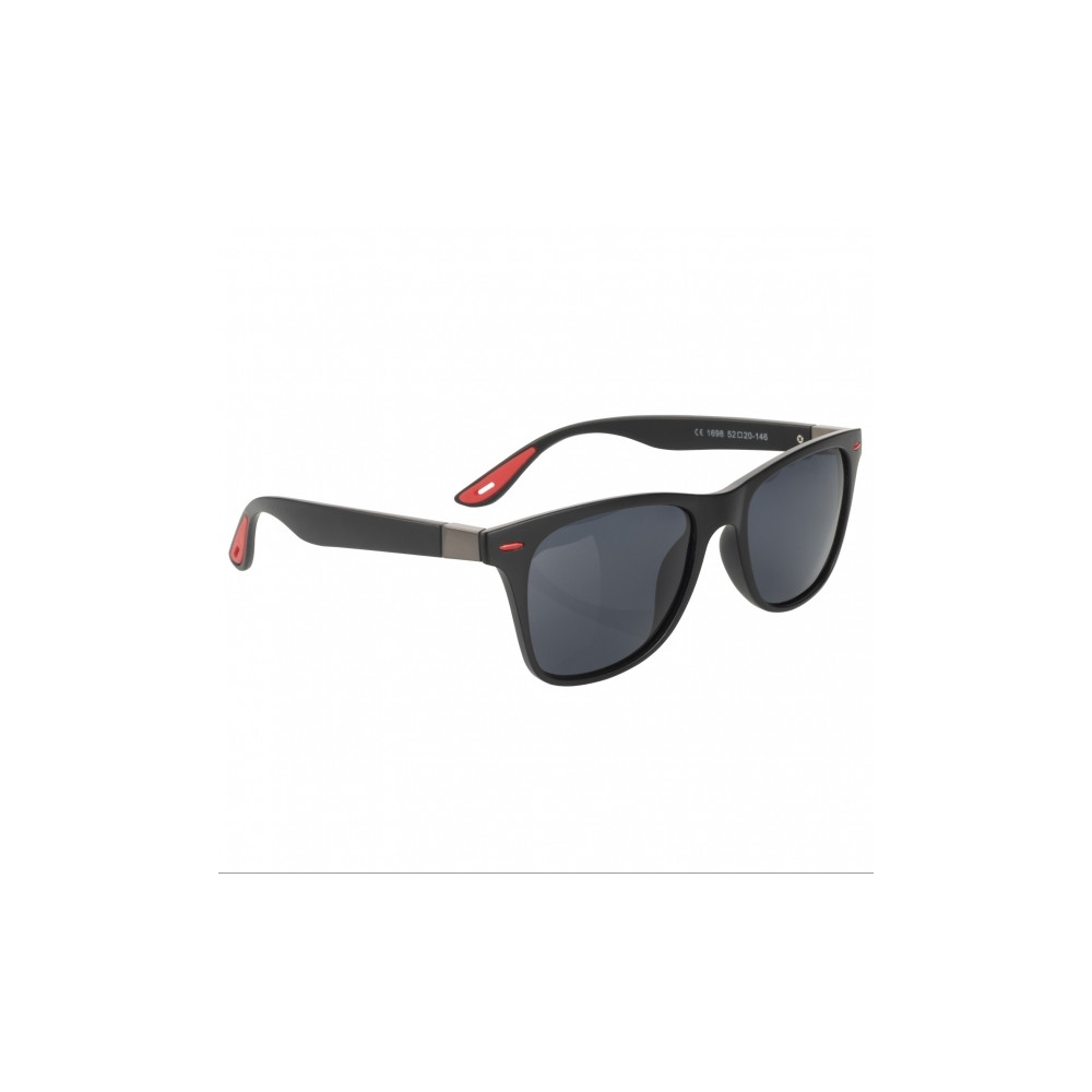 Polaryzacyjne okulary przeciwsłoneczne firmy Schwazwolf. Oprawa okularów w kolorze czarnym z czerwonymi detalami i metalowymi zawiasami, na których umieszczono logo Schwarzwolf. Posiadają czarne soczewki z ochroną UV400. W zestawie czarny woreczek z mikrofibry i twarde czarne etui z zamkiem błyskawicznym. W zestawie biała ściereczka czyszcząca z mikrofibry.